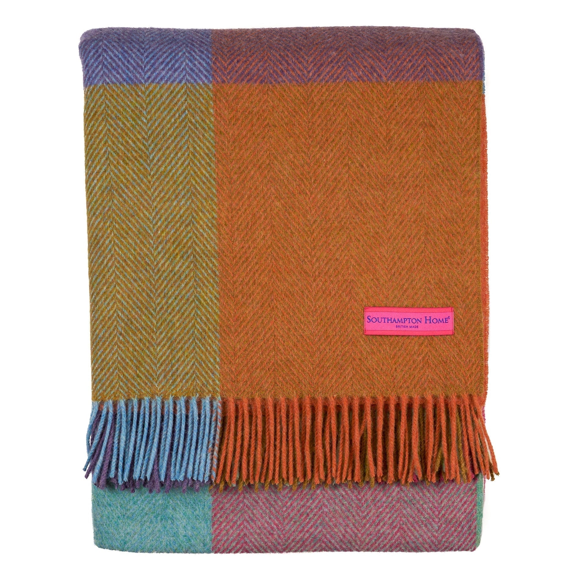 Wrap yourself in British heritage and comfort with the Southampton Home Merino Wool Throw. Woven in the textile heartland of England, this lightweight yet insulating throw is crafted from 100% premium Merino wool. The vibrant colors and block pattern introduces a contemporary twist to a timeless British textile tradition.