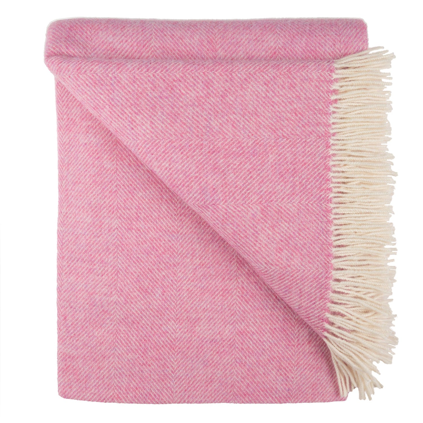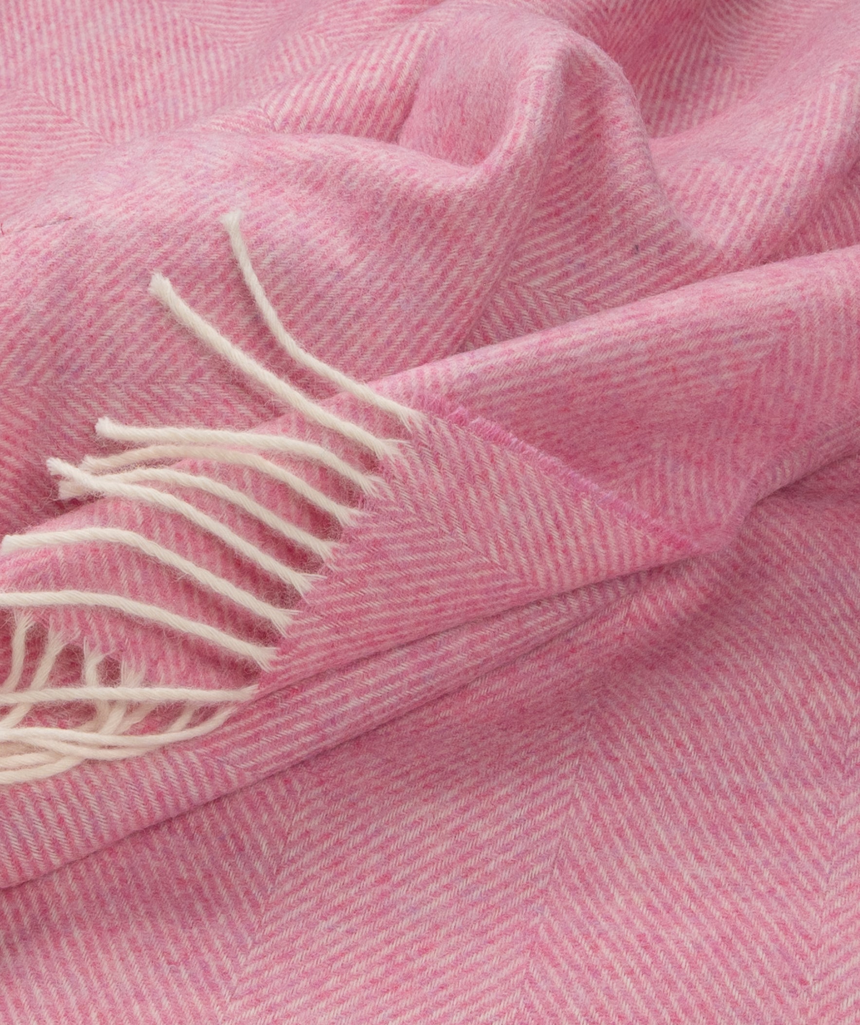 Southampton Home Shetland Lambswool Herringbone Throw – Light Pink | Woven in England