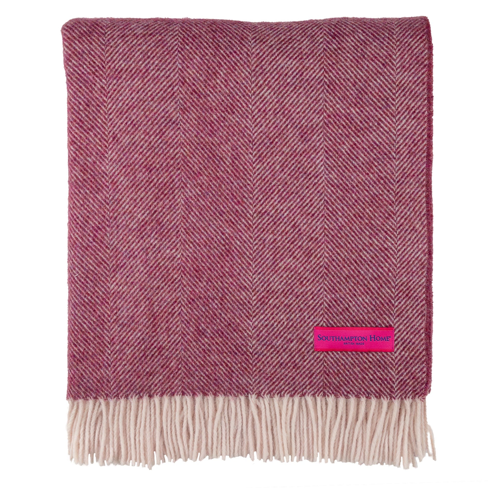 Southampton Home Shetland Lambswool Herringbone Throw – Berry | Woven in England