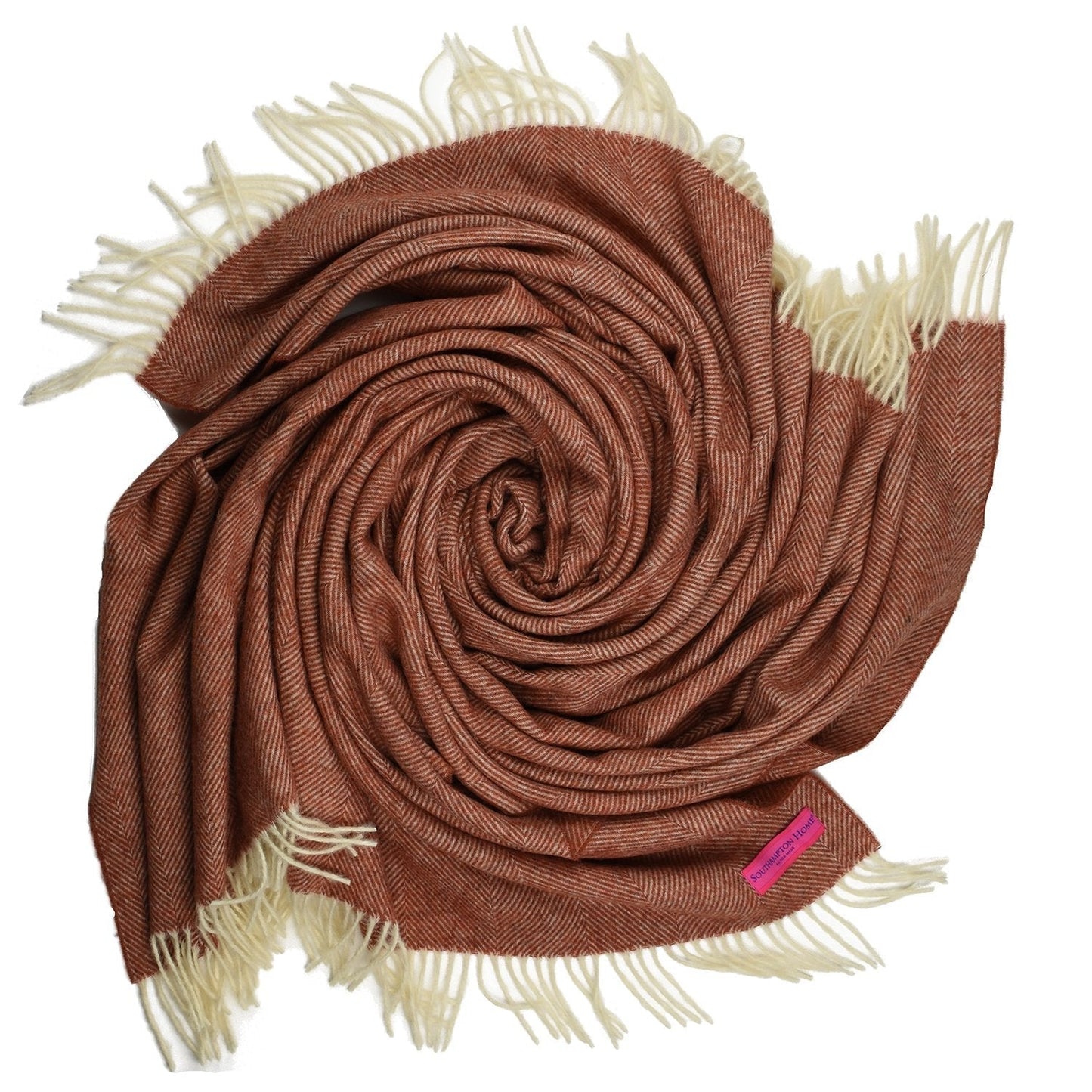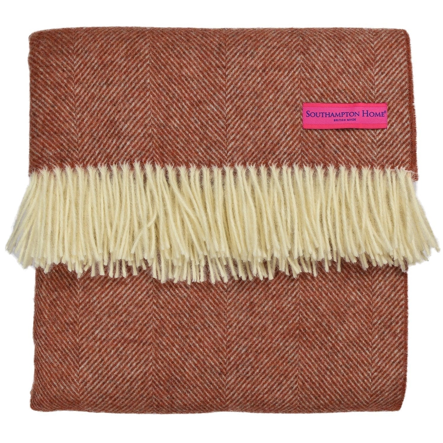 Southampton Home Shetland Lambswool Herringbone Throw – Terracotta | Woven in England