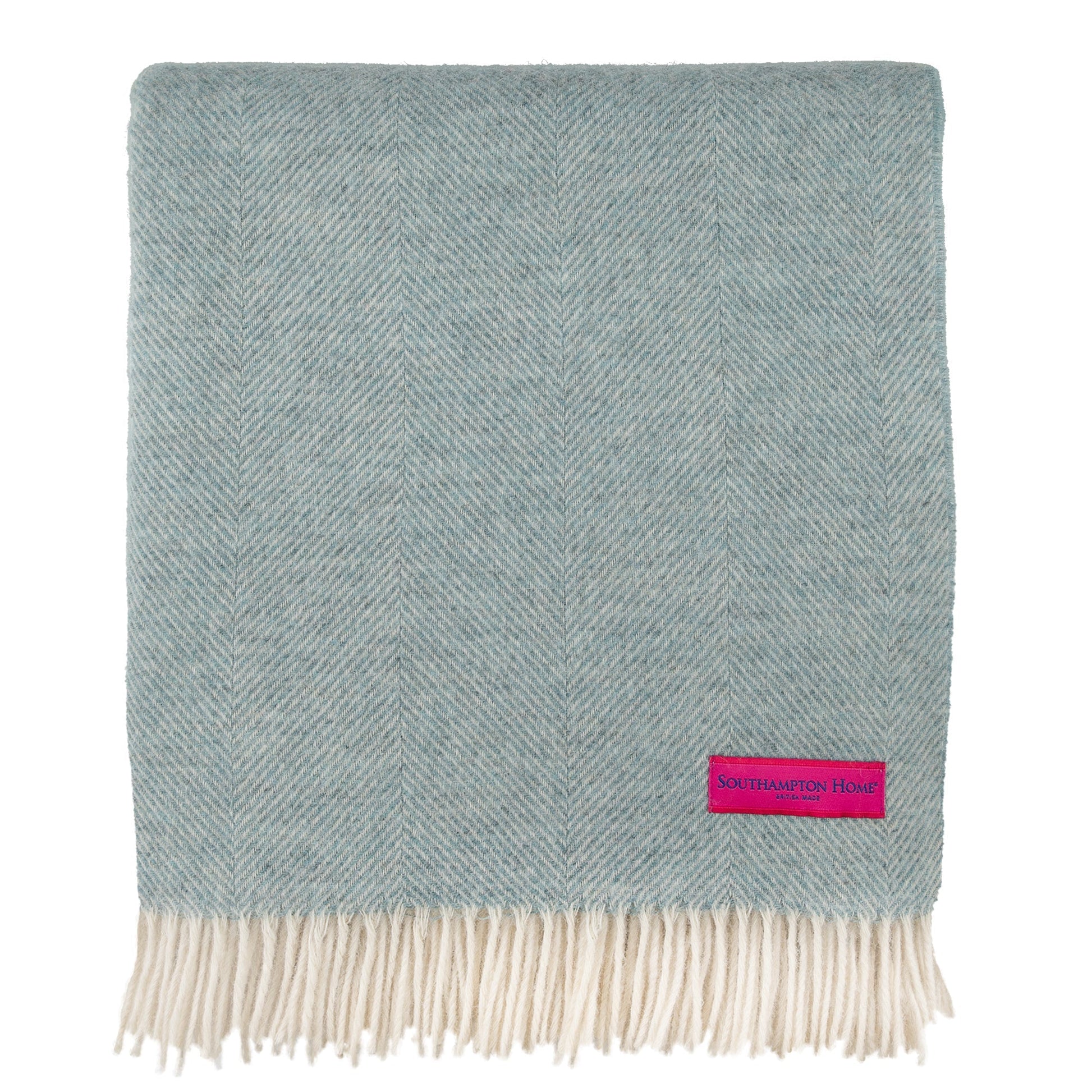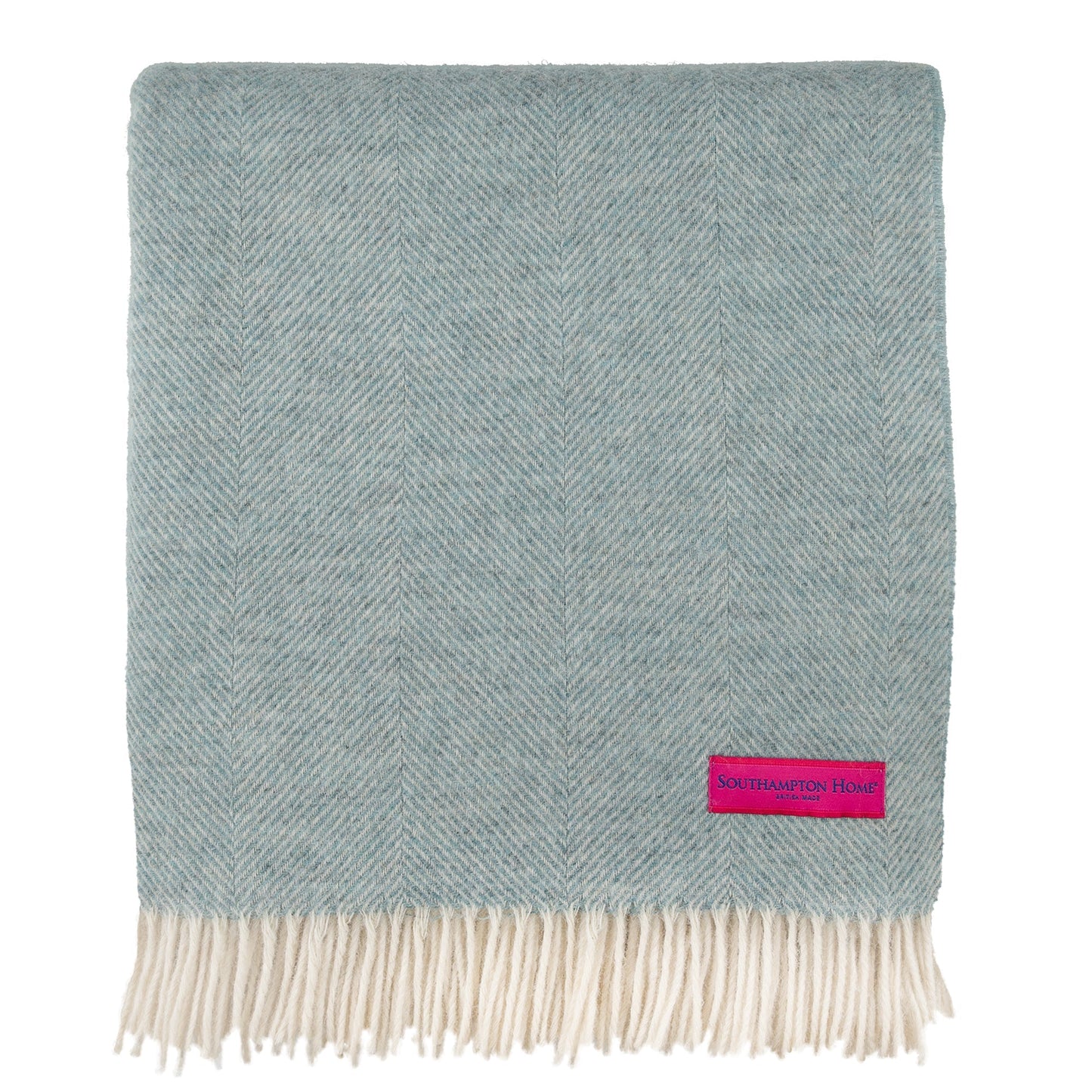 Southampton Home Shetland Lambswool Herringbone Throw – Robin's Egg | Woven in England